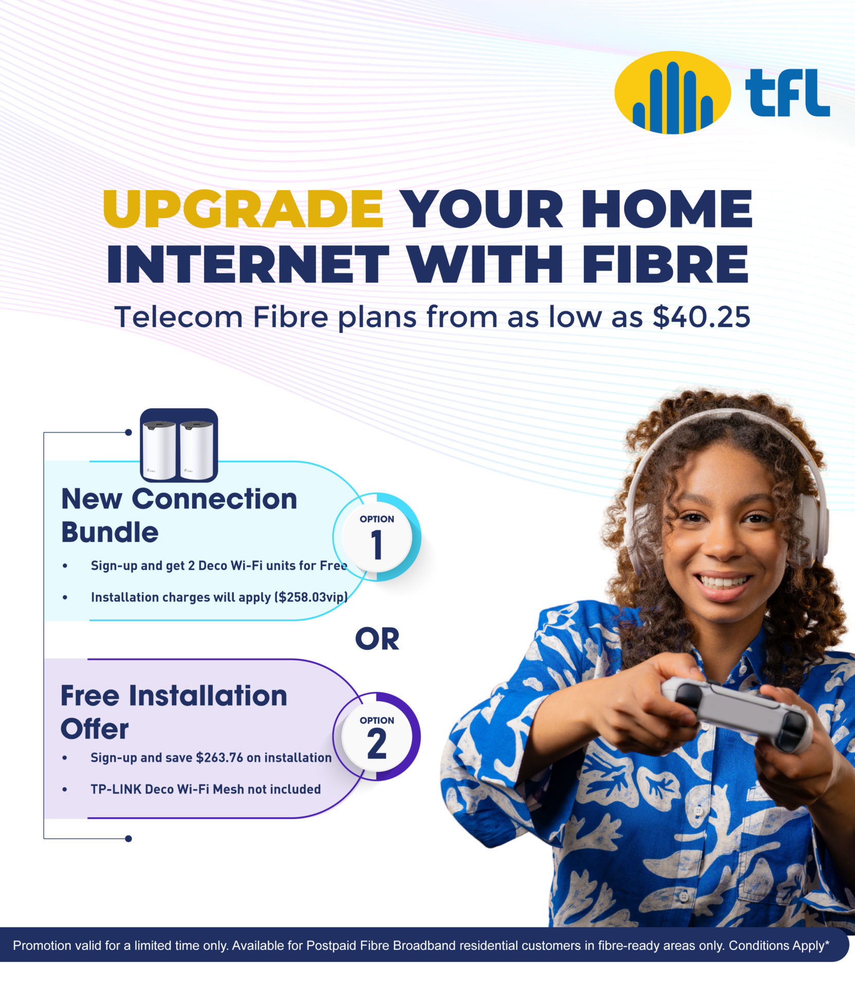 Sign-up for Home Fibre and get FREE installation OR 2 Deco WI-FI Units